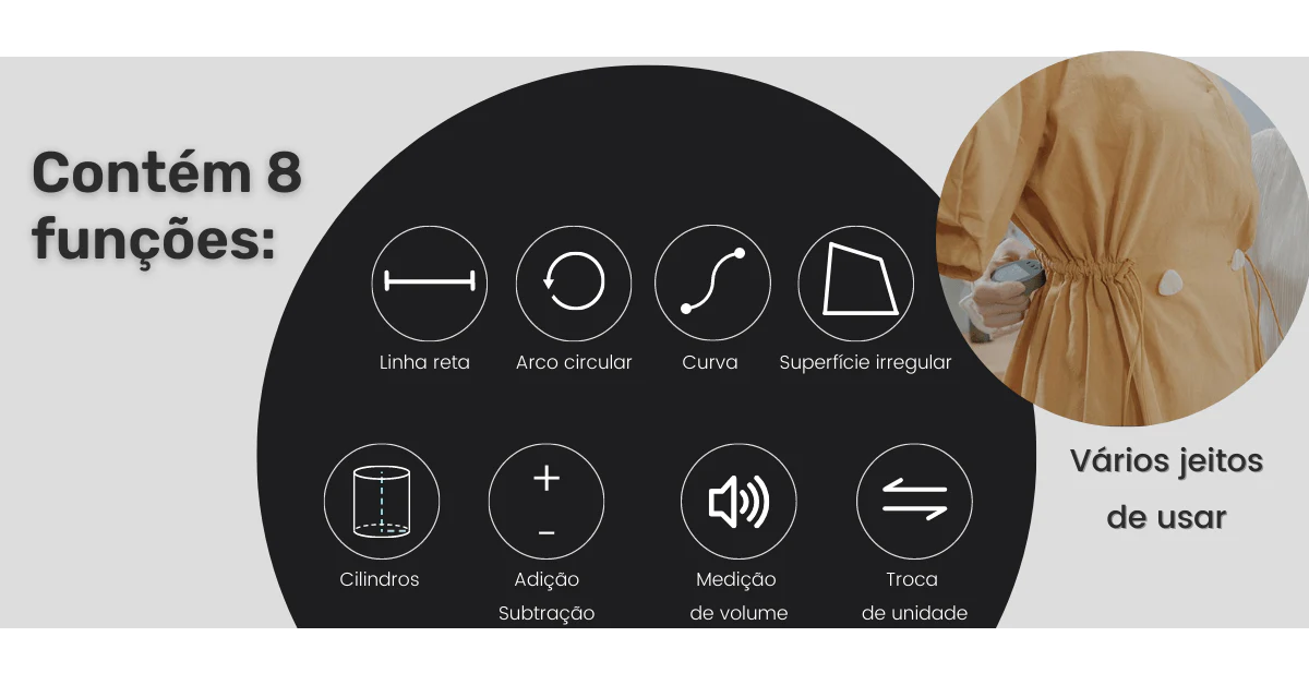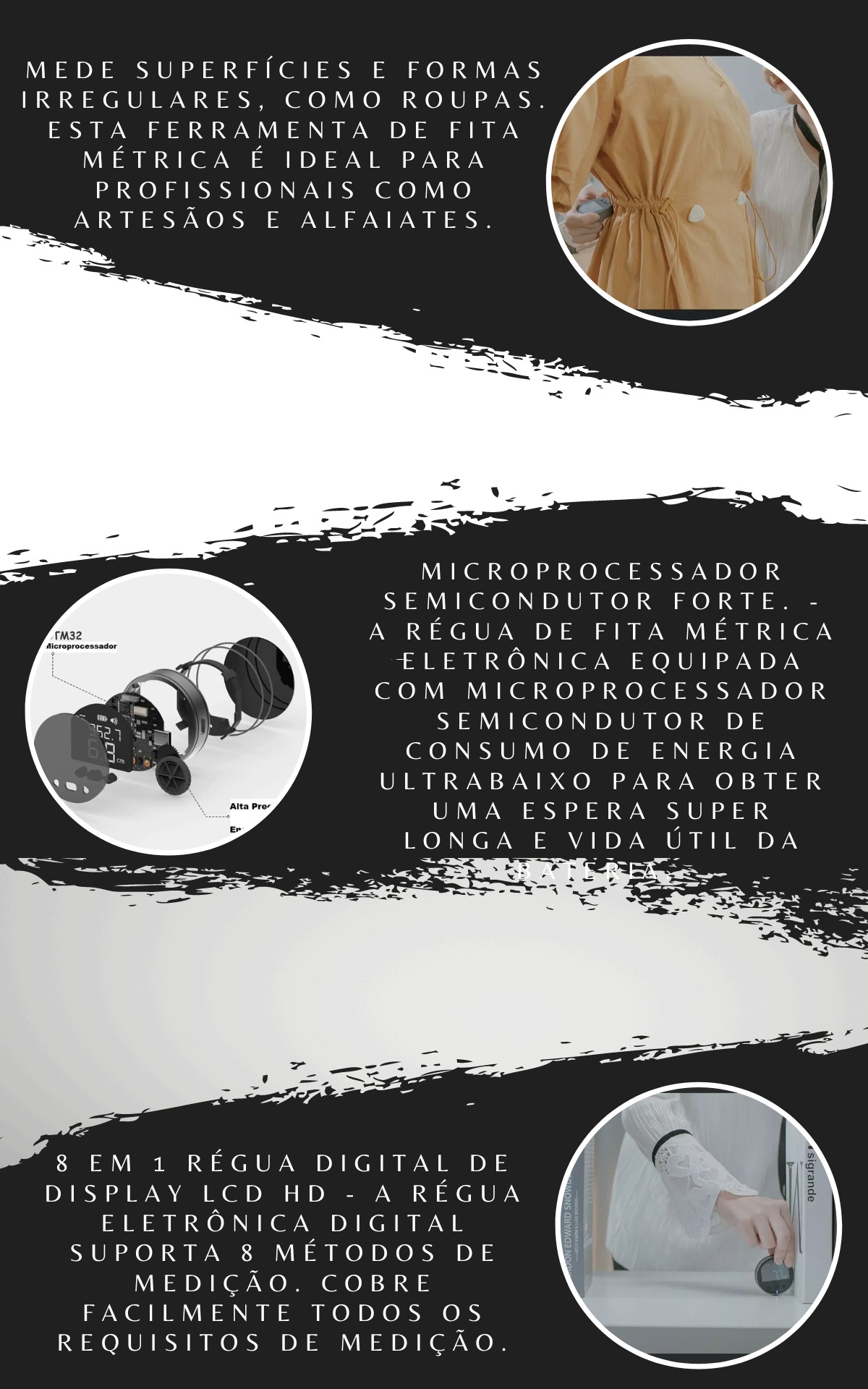 - ✅ O Medidor Digital não só pode realizar o trabalho de fita métrica comum de forma excelente, mas também pode medir superfícies e formas irregulares, como roupas, e é um equipamento de tecnologia fantástico que pode medir superfícies e curvas. Esta ferramenta de fita métrica é ideal para profissionais como artesãos e alfaiates.